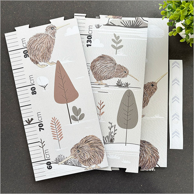 Our growth charts are to be placed 55cm above floor level and come in 3 pieces. We advise to hang them with 3M double sided tape from Bunnings , Mitre 10 or your local home hardware store or more permanent adhesives.