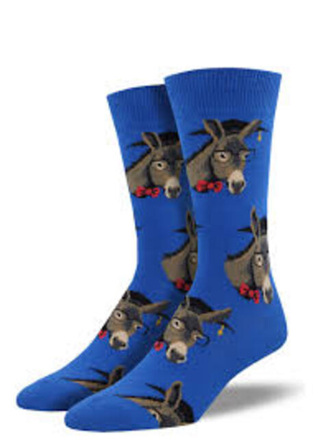 Everyone knows a smart ass. Now is the time to celebrate their smart ass-ary with these fab socks. Blue in colour, decorated with donkeys wearing a bow tie, glasses and a graduation cap, or as a smart ass would correct to, "mortarboard".