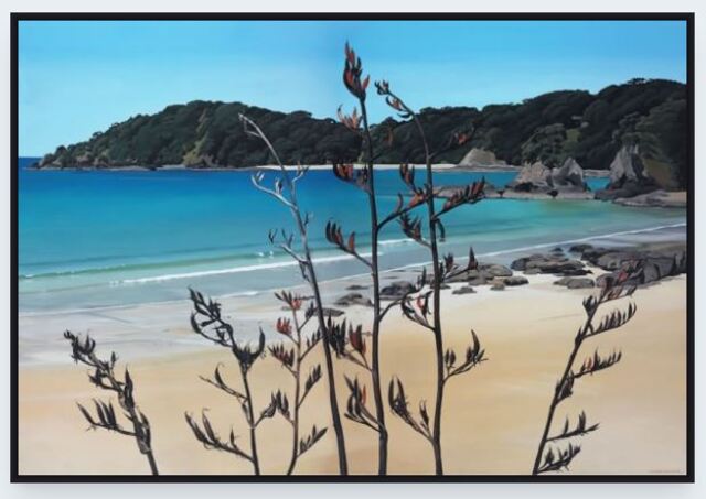 Northland is scattered with some of the world's most beautiful beaches Alison Gilmour manages to capture their individual beauty in a way which is sure to impress. This piece shows the view from magical Woolleys towards Whale Bay.